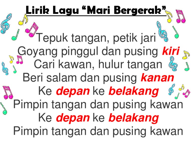 Lagu Aktivitas Lagu. Ke depan ke belakang. Berhenti kau berduka tak guna kau sengsara bersama kita bersorak riang tuk.